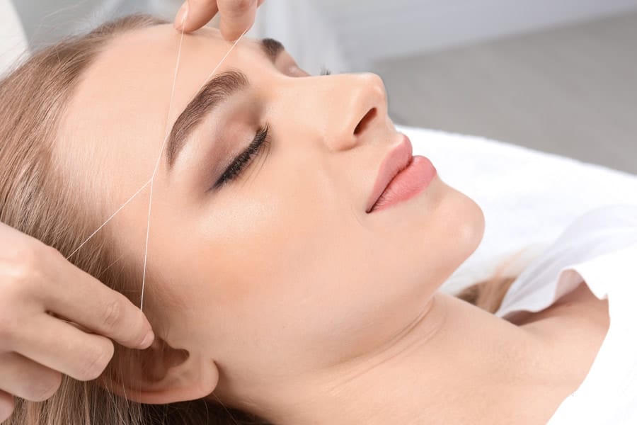 Eyebrow threading is a form of epilation. The process removes the entire hair, including the root, rather than cutting it. A thin cotton or polyester thread is doubled in threading, and then twisted. It is then rolled over regions of unwanted hair, plucking the hair at the follicle stage. Unlike tweezing, where single hair is pulled out one at a moment, threading can remove short hair rows.